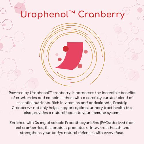 PROSTRIP®️ CRANBERRY+ Urophenol™ Providing 36 mg Proanthocyanidins (PACs) 30 Oral Vegan Strips – No water Needed